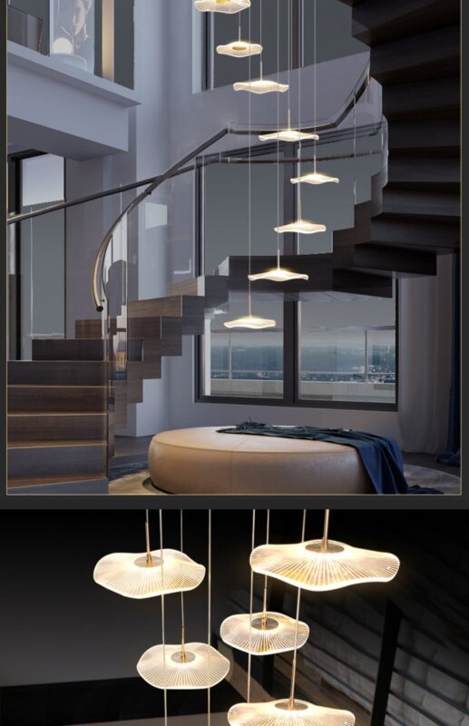 15 LIGHT LED ROUND ACRYLIC DOUBLE HEIGHT STAIR CHANDELIER – WARM WHITE
