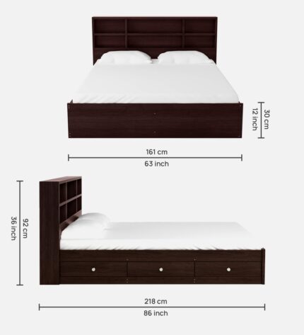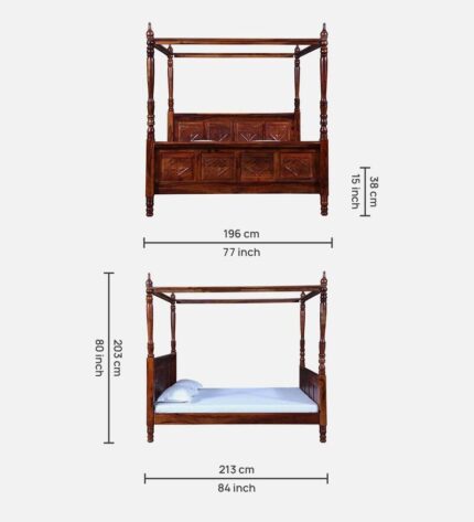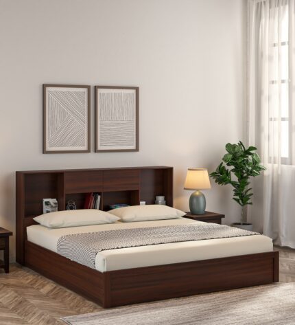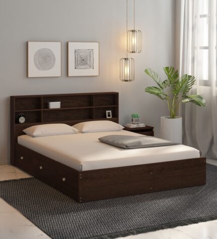 Uttara Solid Wood Queen Size Bed In Rustic Teak Finish