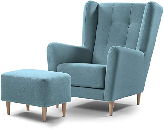 olour Light Blue ra A to Z Fur ture roduct Dime io 94D x 82W x 101H Ce imeters aterial Rosewood i sh Type Glossy oom Type Bedroom Livi room Di office rame Material Sheesham wood ge Ra e (Descriptio I a et Qua ity 1.00 cou luded Compo s YES ee less bout this item rimary Material: Fabric, Frame Material: Solid Wood, Base Material: Solid Wood, Legs: Solid Wood with dark polish, Upholstery Material: Fabric, Filli Material: Foam with High De ity. ata / facts wi chair: total height 101 cm, total width 82 cm, total depth 94 cm, seat height 45 cm, foot height 13.5 fro a 12.5 rear. ata / facts Footstool: total height 42 cm, total width 61 cm, total depth 41 cm omfortable a moder footstool with a stable structure. The footstool is a real eye catcher with its elega look a also provides excelle relief for the feet. Robust, stable a lo lasti co tructio he seat is supported by wave spri s a foam. O y the best materials have bee used, the seams a rrow woode feet make the armchair look very elega . omfortable a moder wi chair with sturdy armrests. The wi chair is a real eye catcher with its elega look a also e ures a excelle sitti experie e. The back, ck a shoulders are comfortably supported. Real relaxatio e also help i customizatio Please reach out to us at thewoodart2@gmal.com or at 7217543319