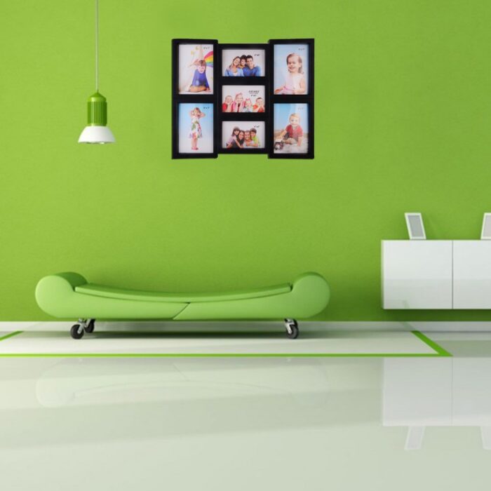 product specification keyStand Material, valuePlastic, keyFrame Material, valueAcrylic, keyBacking, valuePlastic, keyFinishing, valueGlossy, keyMaterial, valueGlass, keyNumber of Contents in Sales Package, valuePack of 1, keySales Package, value1 Photo Frame, keyShape, valueSquare, keycolor, valueBlack, keyNumber of Photos, value7, keyMounted, valueWall mounted, Table mounted Mounted, keyIdeal For, valueFamily, keyWeight, value500 g, keySuitable Photo Size, value15 x 10 cm, 12.70 x 17.78 cm, keyHeight, value15 inch, keyWidth, value18 inch, keyDepth, value2.54 cm, keyCare and Cleaning, valueWipe With a Wet Cotton Cloth