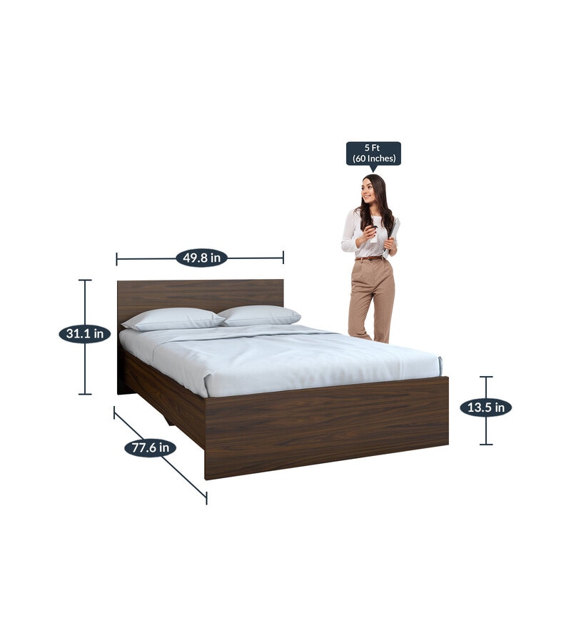 BrandNilkamalDimensions(In Inches)H 31.1 x W 49.8 x D 77.6Weight66 KGWarranty12 Months’ WarrantyAssemblyCarpenter AssemblyPrimary MaterialEngineered WoodRoom TypeBedroomStorageNo StorageSeating Height13.5Recommended Mattress Size78 L x 48 W InchProduct Rating5Dimensions (In Centimeters)H 79 x W 126.5 x D 197.1