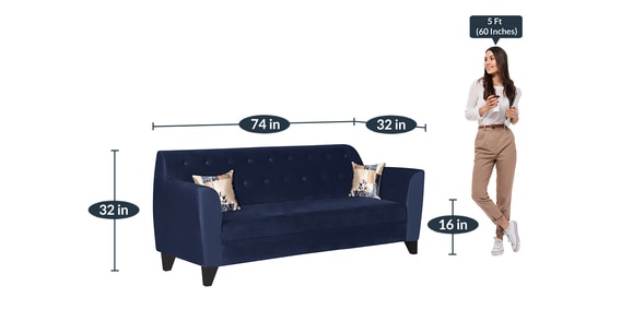 BrandTrevi FurnitureDimensions(In Inches)H 32 x W 74 x D 32Weight30 KGColourBlueWarranty36 Months’ WarrantyAssemblyCarpenter AssemblyPrimary MaterialFabricRoom TypeLiving RoomCollectionBaliSeating Height16Product Rating5Dimensions (In Centimeters)H 81.3 x W 188 x D 81.3
