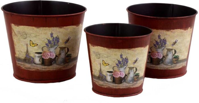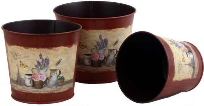 Deziworkz Plant Container Set (Metal) Price: Rs. 870 Vintage inspired Round planters Set of 3 Planters is sure to add a charming dynamic to your modern interior space. In 3 various sizes this set is ideal for holding roses, tulips or all manner of blossoming blooms.Vintage inspired Round planters Set of 3 Planters is sure to add a charming dynamic to your modern interior space. In 3 various sizes this set is ideal for holding roses, tulips or all manner of blossoming blooms.