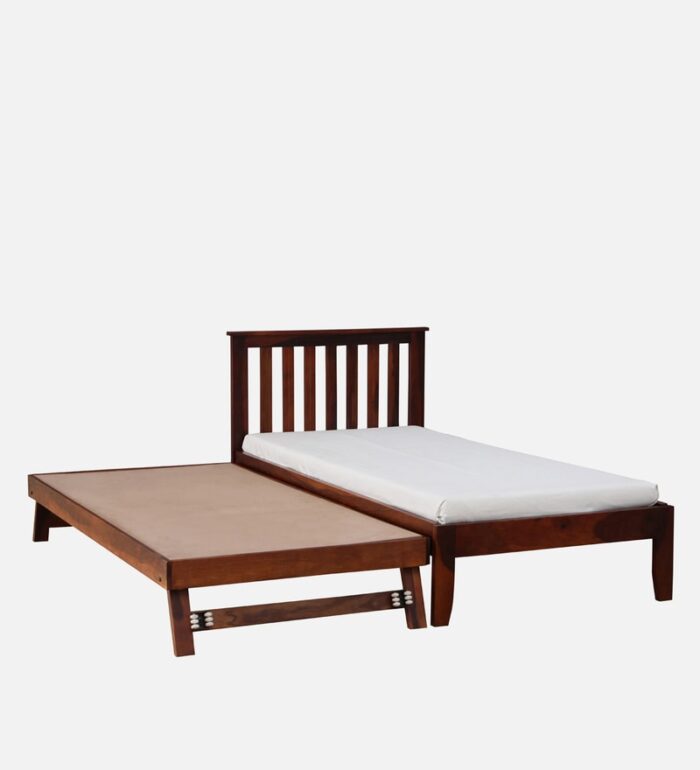 Freya Solid Wood Single Bed with Trundle in Honey Oak Finish