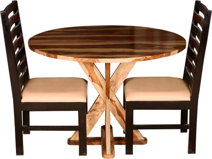 Key Features of Handiana Solid Wood Dining Set 2 Seater Round Solid Wood Storage Included: No,Specifications of Handiana Solid Wood Dining Set (Finish Color – Brown) Installation & Demo Installation & Demo Details Installation and demo for this product is done free of cost as part of this purchase. Our service partner will visit your location within 72 business hours from the delivery of the product. In The Box 1 Table, 2 Chairs General Brand Handiana Suitable For Dining & Kitchen Storage Included No Delivery Condition Knock Down Model Number HNDDC1027 Style Contemporary & Modern Seating Capacity 2 Seater Upholstery Type Cushion Upholstery Included Yes Care Instructions Clean With Soft Cloth, Wipe Clean Regularly. Number of Benches 0 Finish Type Glossy Important Note Cancellation NOT allowed for this product after 24 hrs of order booking. Table Dimensions Table Height 760 mm Table Depth 1070 mm Table Diameter 1070 mm Table Weight 25 kg Table Width 1070 mm Chair Features Number of Chairs 2 Warranty Covered in Warranty Manufacturing Defects Service Type Products will be repaire or replaced as required and deemed fit by the manufacturer. Customer needs to contact the manufacturer to avail warranty. Warranty Summary 1 Month Limted Warranty Against Manufacturing Defects. Not Covered in Warranty Wear and Tear. Disclaimer – The color of the product may vary slightly compared to the picture displayed on your screen. This is due to lighting, pixel quality and color settings – Please check the product’s dimensions to ensure the product will fit in the desired location. Also, check if the product will fit through…View More – The color of the product may vary slightly compared to the picture displayed on your screen. This is due to lighting, pixel quality and color settings – Please check the product’s dimensions to ensure the product will fit in the desired location. Also, check if the product will fit through the entrance(s) and door(s) of the premises – Please expect an unevenness of up to 5 mm in the product due to differences in surfaces and floor levels – Flipkart, or the Seller delivering the product, will not take up any type of civil work, such as drilling holes in the wall to mount the product. The product will only be assembled in case carpentry assembly is required – In case the product appears to lack shine, wiping the surface with a cloth will help clear the surface of dust particles Table Features Table Shape Round Material & Color Upholstery Color Beige Primary Color Brown Primary Material Solid Wood Secondary Material Subtype Rosewood (Sheesham) Secondary Material Solid Wood Finish Color Brown Primary Material Subtype Rosewood (Sheesham) Chair Dimensions Chair Weight 15 kg Chair Depth 480 mm Chair Width 460 mm Chair Height 990 mm