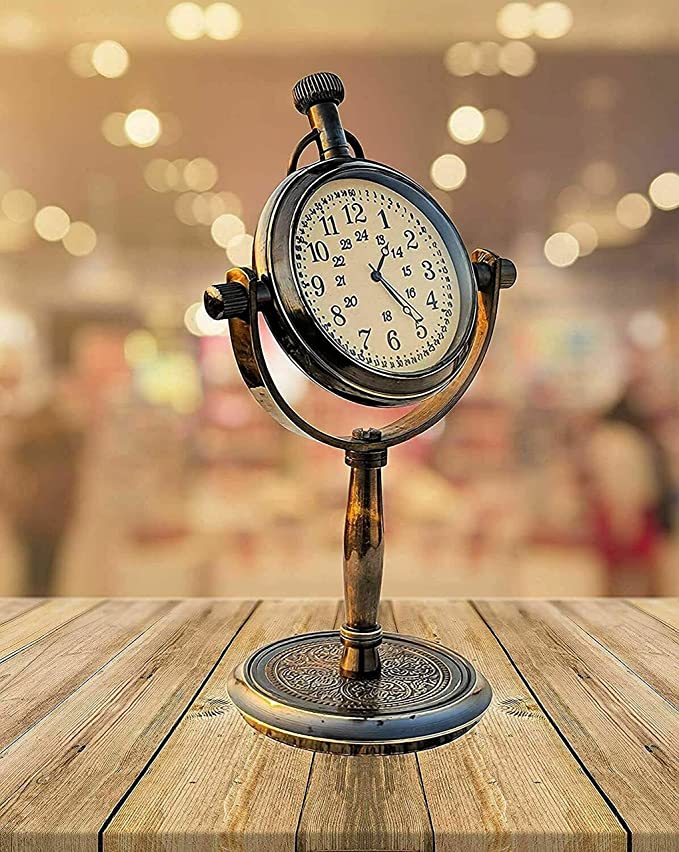 About this itemBeautiful Desk Clock With Stand Engraved DesignsHandmade Antique Stand Solid Brass Table Clock Antique Finish for Study Table, Office, Bedroom, Living Room, Home Decor, Unique Beautiful gifting ItemAntique Brass Table Decorative Desk Clock100% Quality Products & Fully Handmade ProductMake For You And Your Modern Home Decor Desk Decor Gift ItemThis Is A Decorative And Gift ItemBattery Type: AG4 364A Battery Is Used In This Desk Clock The Lid Which Is In The Back Of This Desk Clock Is Opened By Rotating The Anti-Clock Vise And The Cell Is Inserted In The MachineHandmade Antique Stand Solid Brass Table Clock Antique Finish for Study Table, Office, Bedroom, Living Room, Home Decor, Unique Beautiful gifting Item Home Decor Clock: This clock can be used on study table,