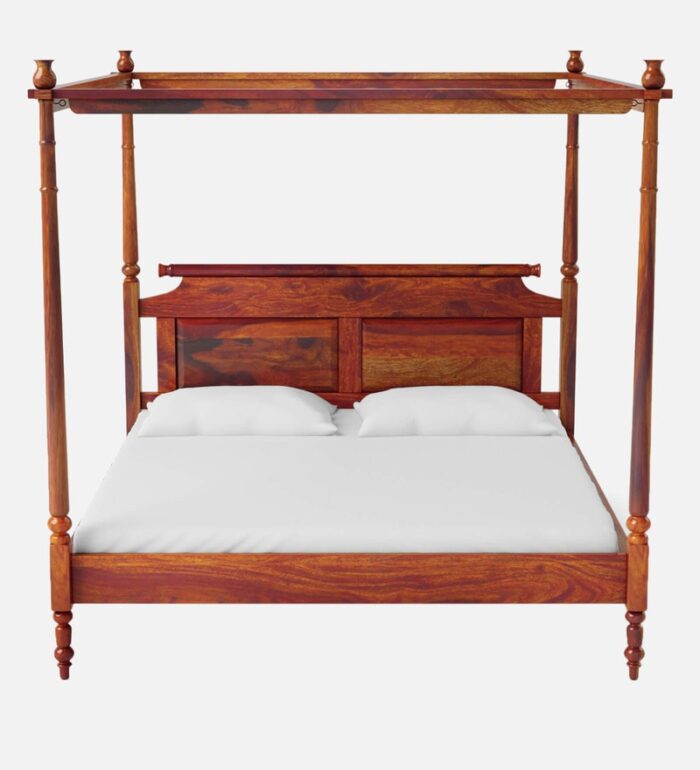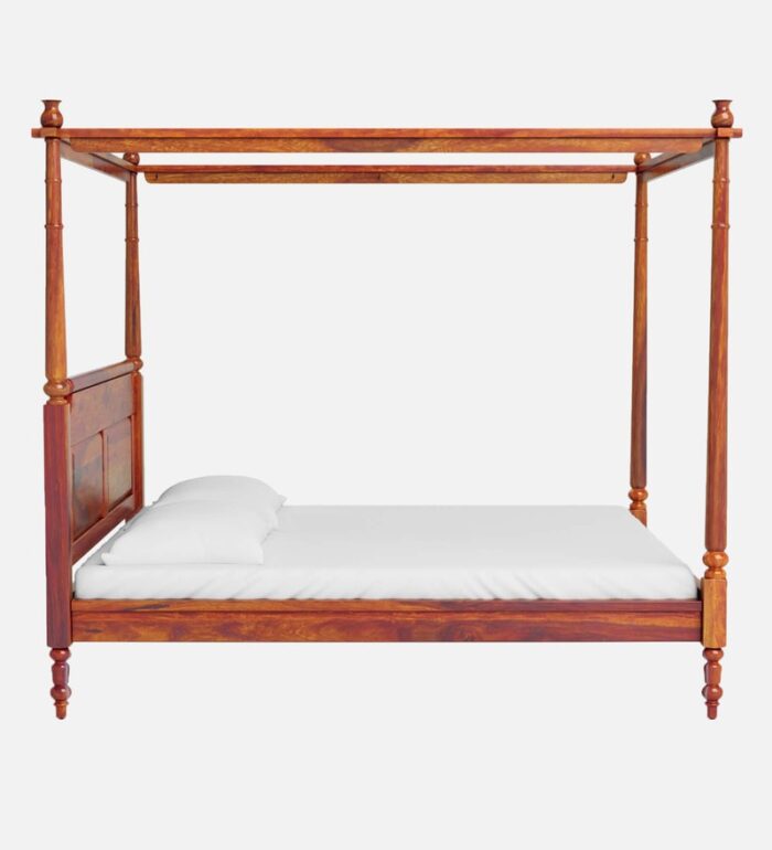 Harleston Solid Wood King Size Poster Bed In Honey Oak Finish