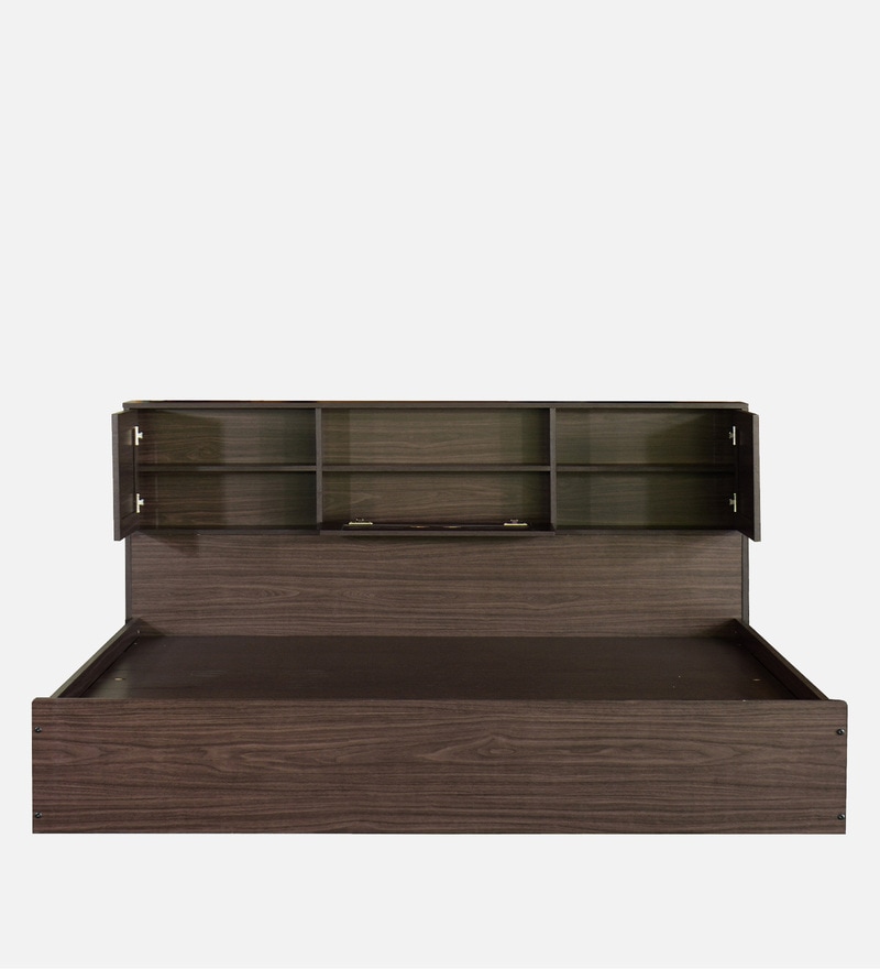 Home beds Hideki Blackline King Size Bed With Box Storage In Walnut Finish