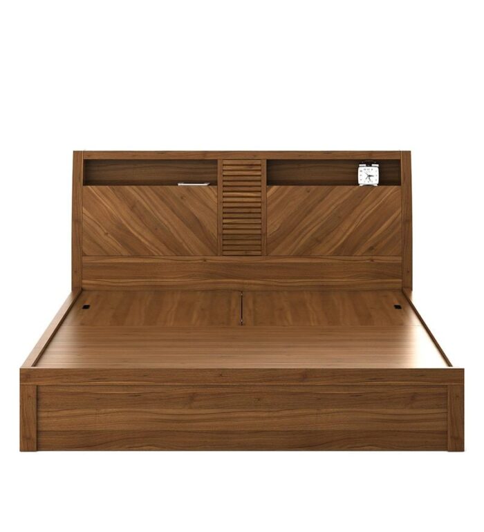 Kosmo Monarch Queen Size Bed with Storage in Natural Teak Finish