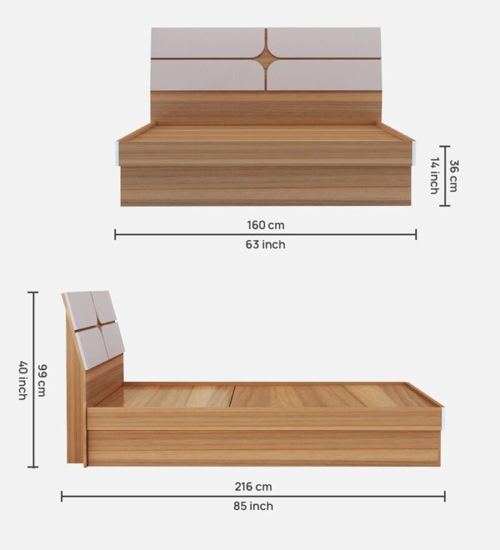 Kruger Queen Size Bed with Hydraulic Storage in Teak finish