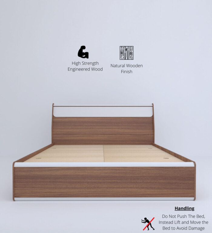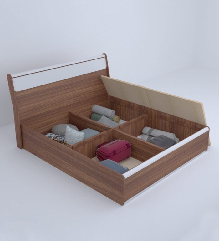 Lixo Queen Size Bed with Box Storage in Teak finish