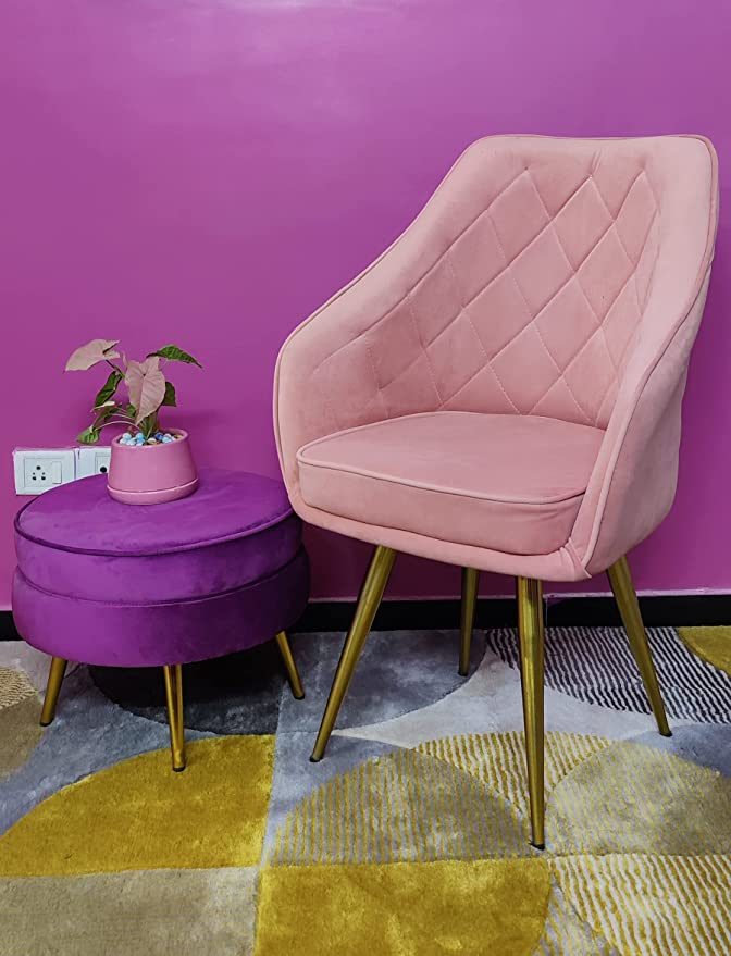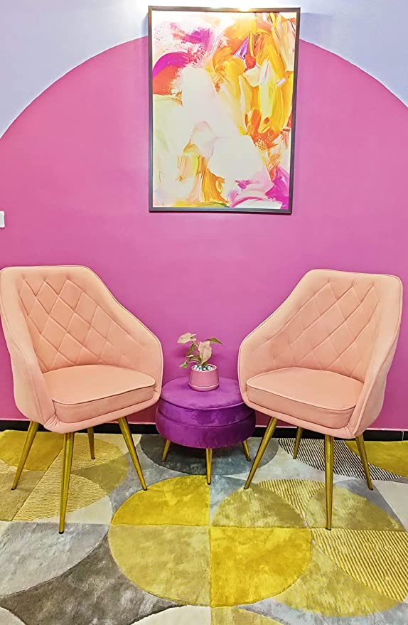 Home chairs My Art Design – Pair of 2 Stylish, High Back Modern, Elegant & Comfortable Velvet Arm Shell Chairs (2 Chairs) (Pink)