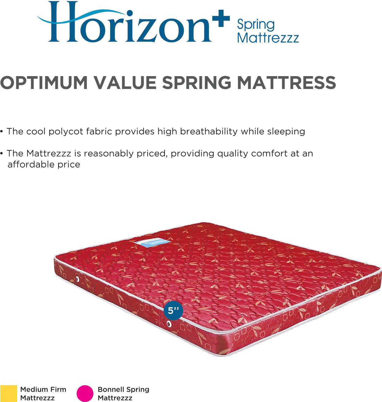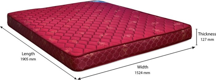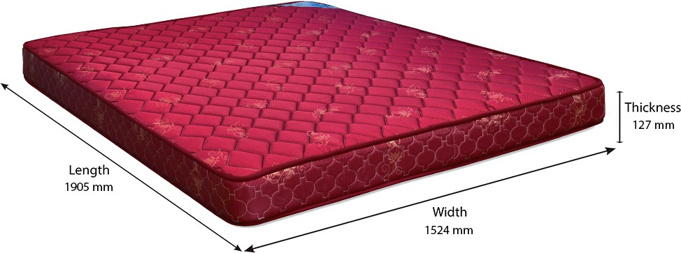 Specifications of Nilkamal Queen Spring Mattress (1905 X 1524 X 127 mm) In The Box Mattress + Gaurantee card + Invoice General Foldable No Comfort Level Firm Brand Nilkamal Orthopaedic Support No Type Spring Reversible Mattress No Multi-zoned Mattress No Reinforced Edges Yes Filling Material Bonnel Spring Quilted Cover Yes Side Stitched Yes Thickness 127 mm Color Maroon Pillow Top No Model Number FLSBHRZRMRNQL75605 Model Series Name Horizon Layers Multi Layered Length 1905 mm Width 1524 mm Adjustable Bed Yes Zero Partner Disturbance No Removable Cover No Size Queen Care Instructions Clean the mattress with surgical spirit or any mild detergent only. In case of thread coming out, do not pull with hands, use a scissor to cut. Important Note Cancellation NOT allowed for this product after 24 hrs of order booking. Warranty Covered in Warranty 1) Coils or wires that are loose or broken. 2) Coils or wires that protrude or rip through the fabric. 3) Body indention of 1-1/2 or greater on both sides. 4) Excessively lumpy feel. Service Type Customer needs to call our Toll Free number – 1800 – 1219 – 115 Warranty Summary 2 years Not Covered in Warranty 1) Fabric (including stains, soiling or burns) 2) Border wires, which run along the perimeter of the mattresses and foundation, bent due to moving or bending the set. 3) Previously repaired or replaced mattress. 4) Mattrezzz damaged due to abuse. 5) Comforting preferences. 6) Body indention of 1-1/2…View More 1) Fabric (including stains, soiling or burns) 2) Border wires, which run along the perimeter of the mattresses and foundation, bent due to moving or bending the set. 3) Previously repaired or replaced mattress. 4) Mattrezzz damaged due to abuse. 5) Comforting preferences. 6) Body indention of 1-1/2 on both sides. 7) Body indention less than 1-1/2 on both sides. 8) Bed height. 9) Transportation costs. Dimensions Weight 22 kg Disclaimer – The color of the product may vary slightly compared to the picture displayed on your screen. This is due to lighting, pixel quality and color settings – Please check the product’s dimensions to ensure the product will fit in the desired location. Also, check if the product will fit through…View More – The color of the product may vary slightly compared to the picture displayed on your screen. This is due to lighting, pixel quality and color settings – Please check the product’s dimensions to ensure the product will fit in the desired location. Also, check if the product will fit through the entrance(s) and door(s) of the premises – Please expect an unevenness of up to 5 mm in the product due to differences in surfaces and floor levels – Flipkart, or the Seller delivering the product, will not take up any type of civil work, such as drilling holes in the wall to mount the product. The product will only be assembled in case carpentry assembly is required – In case the product appears to lack shine, wiping the surface with a cloth will help clear the surface of dust particles Additional Features Origin of Manufacture India