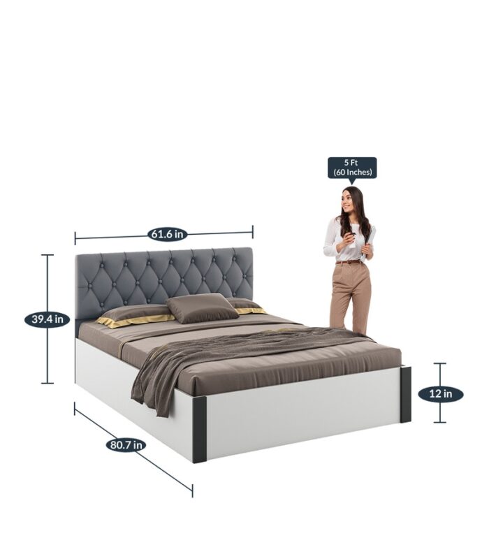 BrandA GLOBIA CREATIONSDimensions(In Inches)H 39.4 x W 61.6 x D 80.7Weight142 KGWarranty36 Months’ WarrantyAssemblyCarpenter AssemblyPrimary MaterialEngineered WoodRoom TypeBedroomStorageHydraulic StorageSeating Height12Recommended Mattress Size78 L x 60 W InchProduct Rating4.5Dimensions (In Centimeters)H 100.1 x W 156.5 x D 205