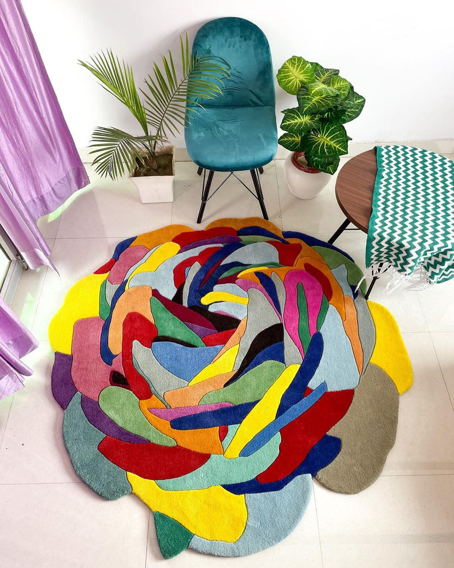 SIZE 5*5 FEET? Material: 100% New Zealand Wool? Quality: 4000 GSM? Hand Tufted? Style: Cut-Pile? Highly Skilled Craftmanship