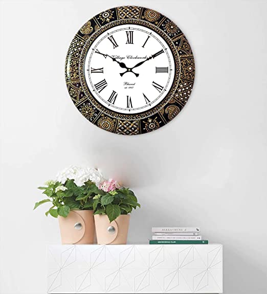 About this itemClock dimension : 16 x 16 inchesDial dimension : 10 inchesWooden frame which is designed to last long and curved glass lens makes it easy to clean and keeps dust away from dial. This Wall Clock is great for any room at home, office or classroom. The classic frame will dress up any room’s decor such as your kitchen, living room, bedroom, family room or dining room.Wall Clock with Large black bold numbers against white face creates easy viewing. This decorative wall clock has been diligently handcrafted by proficient artisans of Rajasthan using various traditional techniques.Easy to Hang on any nail, screw or small wall hook with Large black bold numbers against white face creates easy viewing and precise quartz movements to guarantee accurate time.