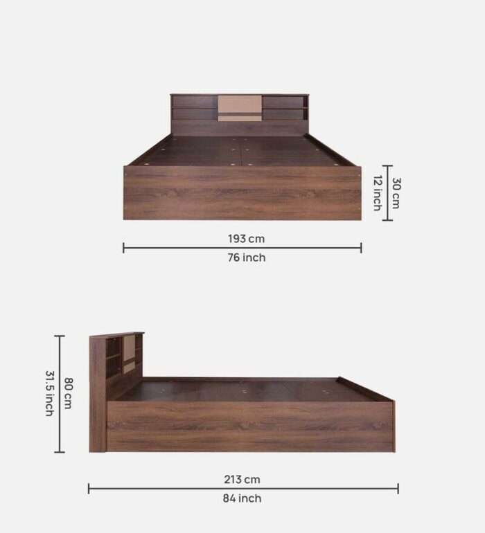 BrandValueWudDimensions(In Inches)H 31.5 X W 75.9 X D 83.9; Mattress Size :78 L x 72 W Inch (Mattress Not Included)Weight132.7 KGColourWalnutWarranty24 Months’ WarrantyAssemblyCarpenter AssemblyPrimary MaterialEngineered WoodRoom TypeBedroomStorageBox StorageSeating Height12.2 InchesRecommended Mattress Size78 L x 72 W InchProduct Rating4.5Dimensions (In Centimeters)H 80.01 X W 192.76 XD 213.10 (All