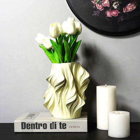 This artistic flower vase is made of resin. It is available in 4 colors, Made in India by local craftsmen.Each vase measures 7.8 inches in height and 3.8 inches at the bottom- the flat bottom gives it a steady grip and doesn’t topple over when flowers are placed.The 3-D texture makes it look appealing and classy. It is available in 4 shades- white, pink, yellow, and cream. This table planter can blend beautifully with any home decor item.This table vase is ideal to gift for special occasions like birthdays, anniversaries, weddings, housewarmings, mother’s day, Diwali, Christmas, eid, and any other festivity and event.Every vase is packed in a triple layer of bubble wrap and sent safely in a cardboard box. Everything is done manually and by Indian craftsmen.