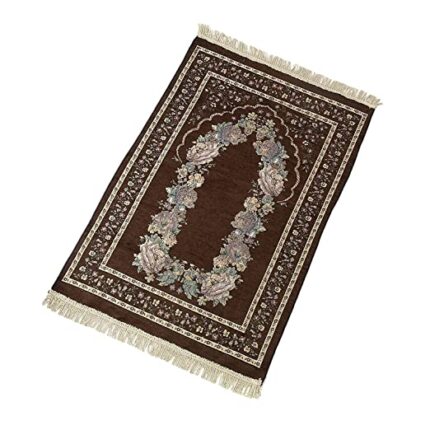 Trendy Retail Portable Polyester Muslim Prayer Rug Ramadan Tassel Carpet Mat Dark Brown
