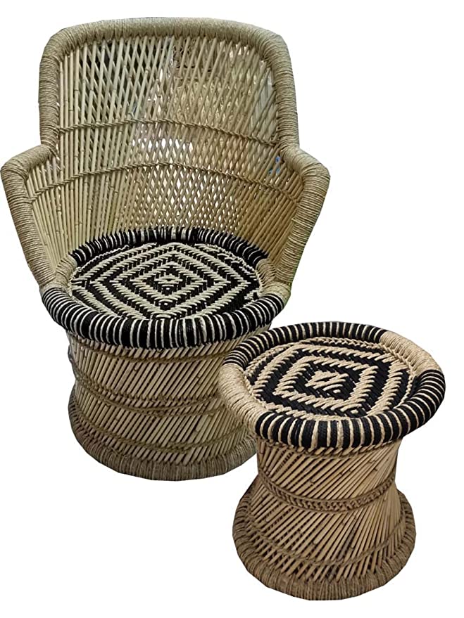 olour Black a Begie ra Ge ric roduct Dime io 35D x 35W x 65H Ce imeters tyle Traditio l pecial Feature Arm Rest aterial Bamboo atter Wave ecomme ed Uses For Product Relaxi i sh Type tural & Ha made oom Type Livi Room, Patio Garde bout this item ra : Va hika Craft . aterial : Bamboo ( Sarka a ) olor : Beige a Black ize : Chair Seat Height : 16 I h Seat Size : 18X 18 hair Le th : 34 i h udda Size: 15 X 15 I h hair Type : Arm Chair ses : I oor & Outdoor oad Capacity : Chair 230 KG oad Capacity : Mudda ( stool ) 120 KG how Less